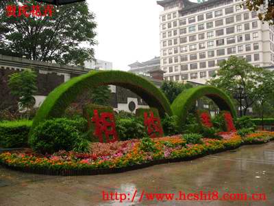 上图:西安市西大街室外花卉造型及各种花卉季节性租摆