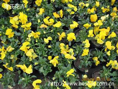 【形态特征】三色堇,一般株高15-20厘米,从根际生出分枝,呈丛生状。基生叶有长柄,叶片近圆心形;茎生叶卵状长圆形或宽披针形,边缘有圆钝锯齿;托叶大,基部羽状深裂。早春从叶腋间抽生出长花梗,梗上单生一花,大花型花径8-10厘米,小花型花径3-6厘米,花有五瓣,通常每朵花有兰紫、白、黄三色;花瓣近圆形,假面状,覆瓦状排列,距短而钝。花期可从早春到初秋。茎、叶含三色堇黄甙;花含芸香甙、挥发油、皂甙、维生素A.C。