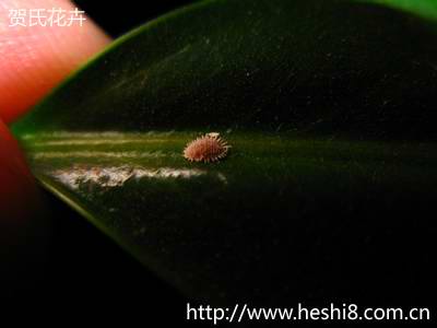 上图:在大叶伞上的介壳虫(经放大处理)